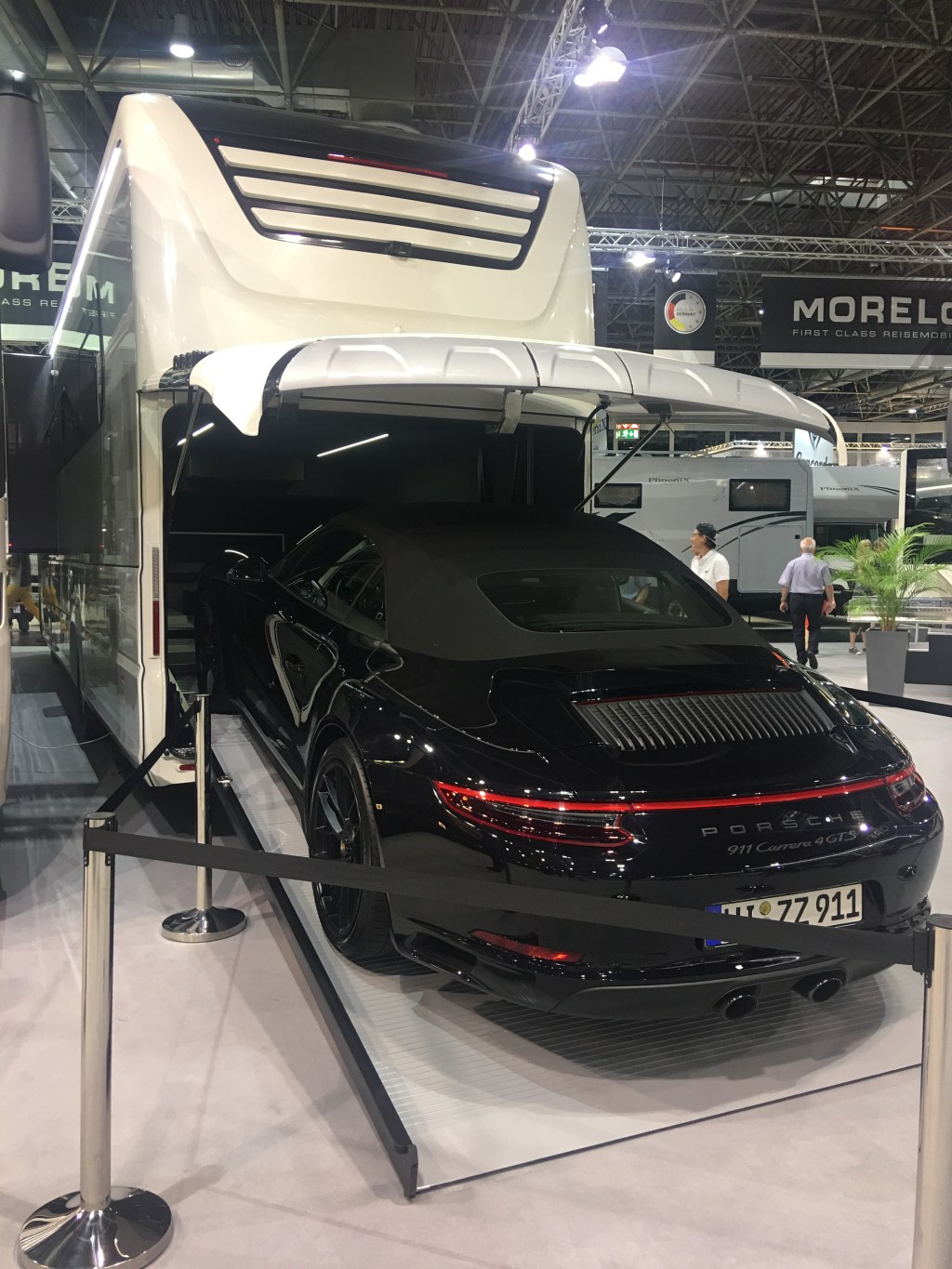 Eine andere Welt erschliesst sich in Halle 5 – dort findet man ausschließlich die Premiumfahrzeuge, also mindestens 8 Meter Länge und ganz viel „Drumherum“. Also die wirklichen Fahrträume, mit Garagen für flotte Sportwagen, ausziehbaren Wohnbereichen, Waschmaschine und Trockner integriert und vielen anderen Annehmlichkeiten. Man kennt diese Kaliber von hochkarätigen Reitturnieren oder auch aus Übersee-Berichten. Hautnah zu erleben was es bedeutet, großzügige Wohnlichkeit zu chauffieren, bedeutet bei der Besichtigung einen eloquenten Representanten des jeweiligen Herstellers zu finden. Gut gerüstet mit Überziehpantoffel betritt man den Gral des mobilen Palastes. In kürzester Zeit allerdings gewöhnt man sich an diese Dimensionen und schätzt den gebotenen Komfort als Must-Have für zukünftige Reisen.