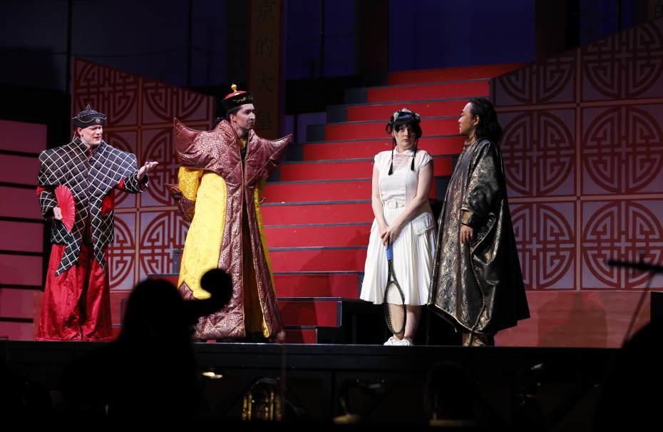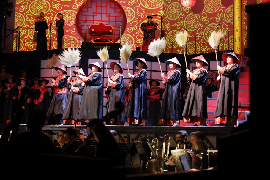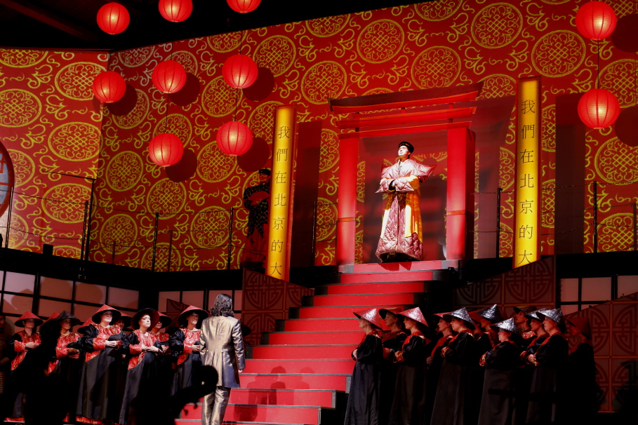 Farbenprächtig inszeniert, zwischen Wien und Peking, gestaltet sich die weitläufige Bühne. Dabei wird mit Videoeffekten nicht gespart, die wirkungsvoll szenische Momente einspielen. Immer wohl dosiert, sich nie in den Vordergrund spielend. Die vielfachen Ebenen des Raumes bespielt das Ensemble mühelos und erfüllt so das Ganze mit Leben. Das wohl intonierte Orchester harmoniert mit den Sängern und Chor in Tempo und Dezibel. Engagiert, erfrischend aktiv und trotzdem sensibel führt Cornelia von Kerssenbrock den Taktstock. Man spürt schon hier bei der Premiere die meisterliche Zusammenarbeit aller Künstler.